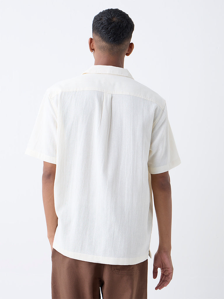 ETA Off-White Floral Embroidered Relaxed-Fit Cotton Shirt