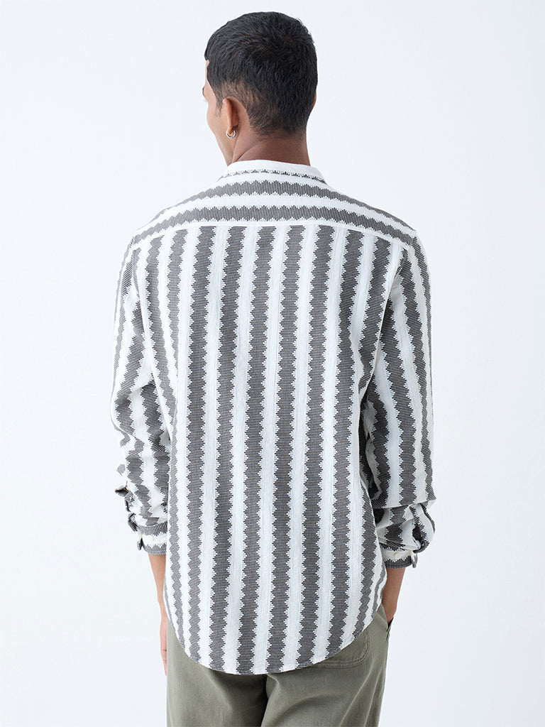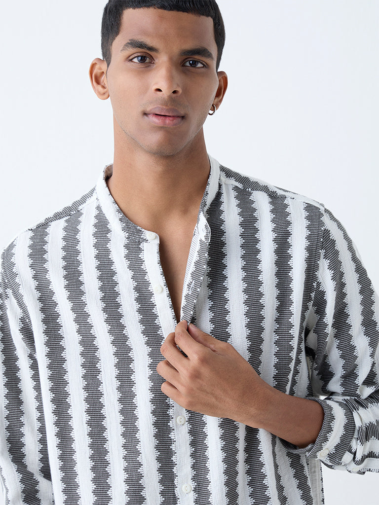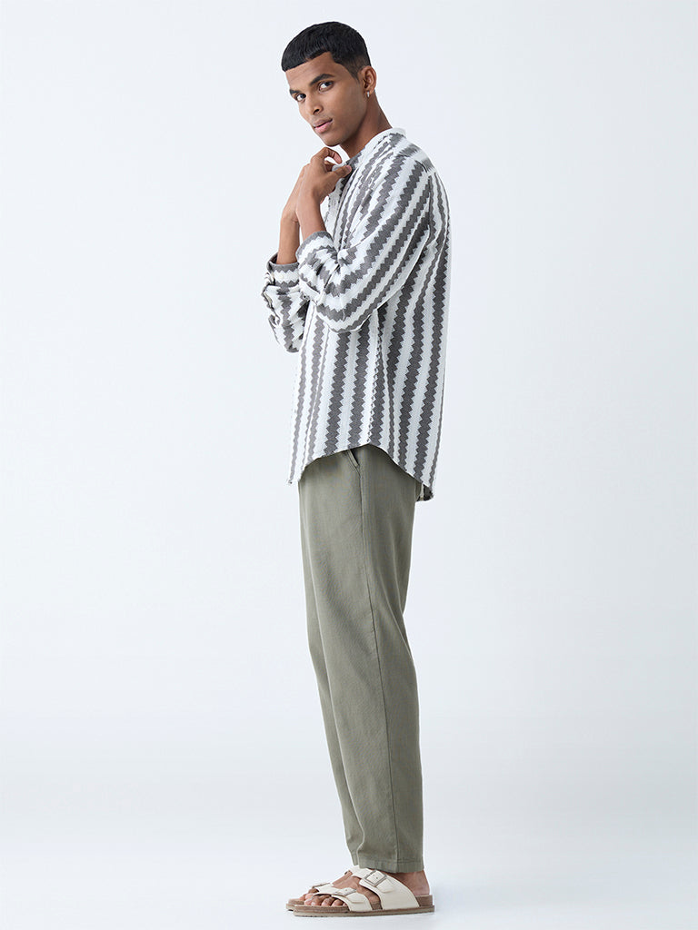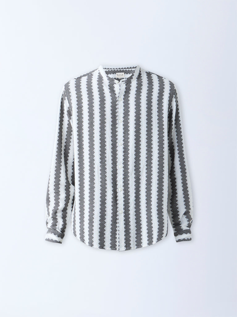 This olive resort-fit shirt from ETA is constructed from airy cotton and elevated with embroidery that adds depth without distraction. The relaxed cut is refined with a band-neck collar, full sleeves, and a clean button placket for easy wearability.