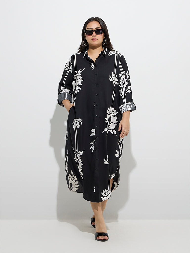 This black shirtdress from Gia is adorned with intricate floral prints that offer a bold yet graceful contrast. Created from quality fabric for a flattering drape, it’s styled with a smart collar, a button-down front, and full sleeves for a polished finish. Thoughtfully designed with side pockets, this dress blends functionality with timeless charm.