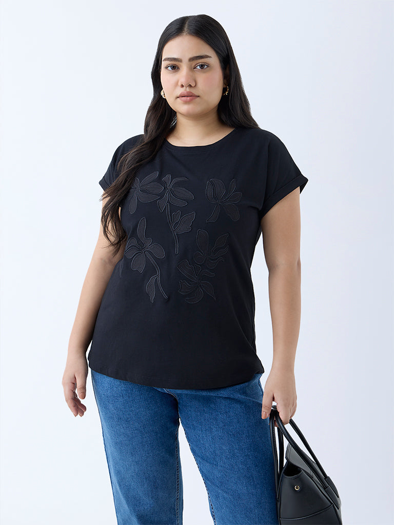 This black tee by Gia is crafted from pure cotton for long lasting comfort. Flaunting graceful floral embroidery, it’s styled with a classic round neck and short sleeves, adding a feminine touch to a casual essential.