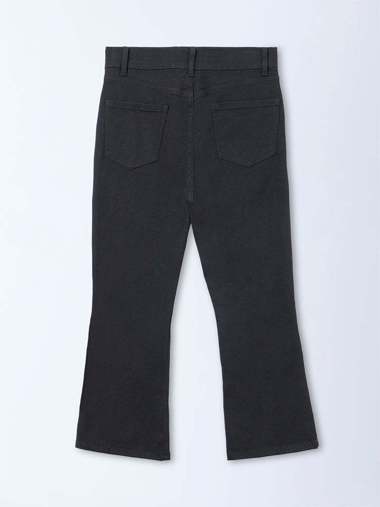 Gia presents these black jeans designed to anchor everyday wardrobes. Crafted from a cotton-blend fabric, they are shaped in a high-rise frame for a flattering fit. Finished with a buttoned waistband, belt loops, a zipper placket and multiple pockets, this pair balances comfort with clean, functional detailing.