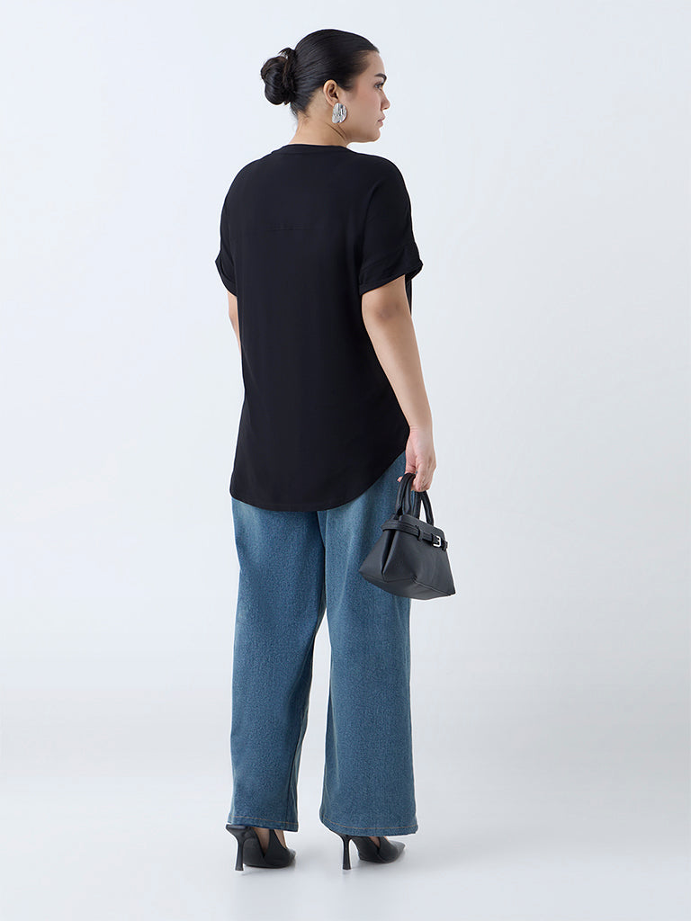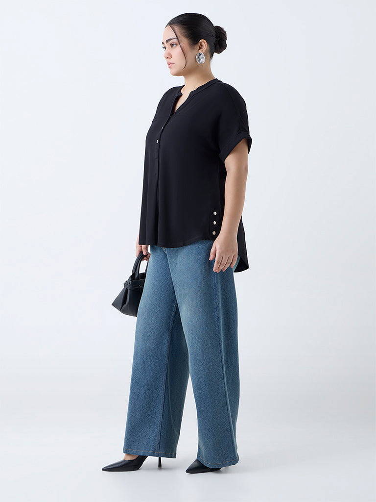 This black top from Gia is fashioned in a minimal profile that feels effortlessly modern. Spun from an ultra-lightweight fabric, it features a mandarin neckline with a brief button placket, while upturned dolman sleeves lend a sophisticated finish.