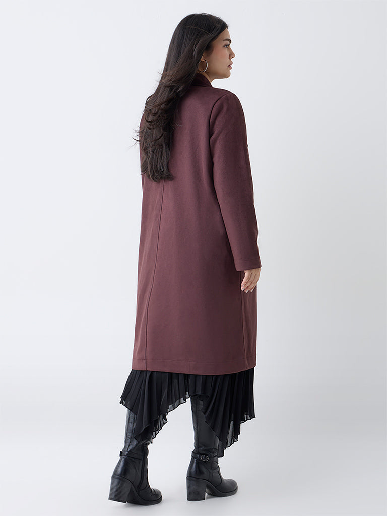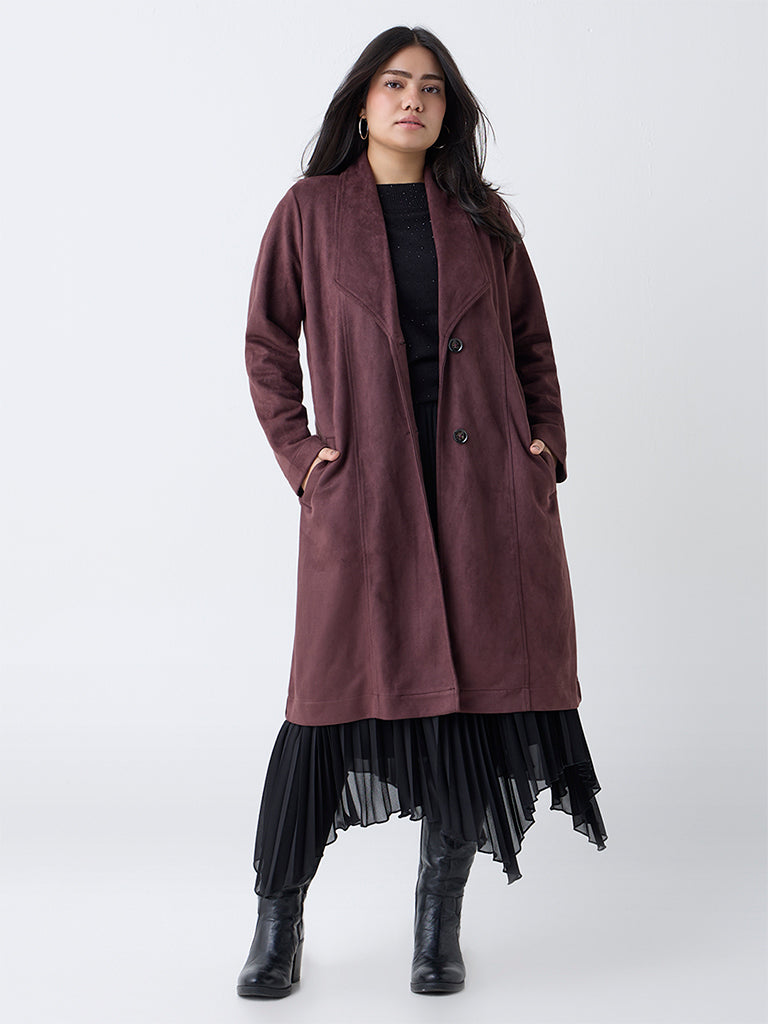 Crafted in soft suede for warmth and timeless appeal, this dark brown trench coat from Gia brings elegance to winter layering. The open front with fluid lapels creates a sophisticated silhouette, while full sleeves and practical pockets add everyday functionality.