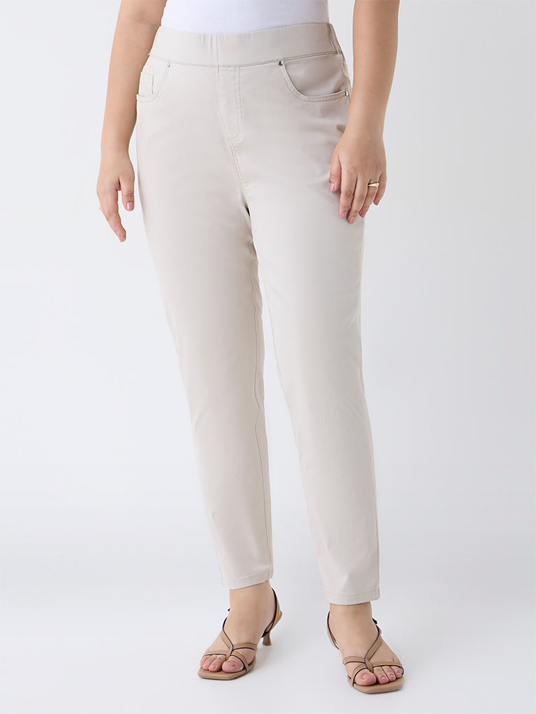 These ivory jeggings from Gia are crafted from a premium cotton-blend fabric for cool, soft comfort. Designed with a relaxed yet flattering fit, they feature an elasticated waistband for effortless wear and practical pockets that add everyday convenience.