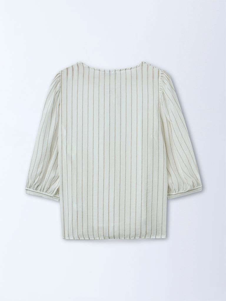 Gia White Striped Top