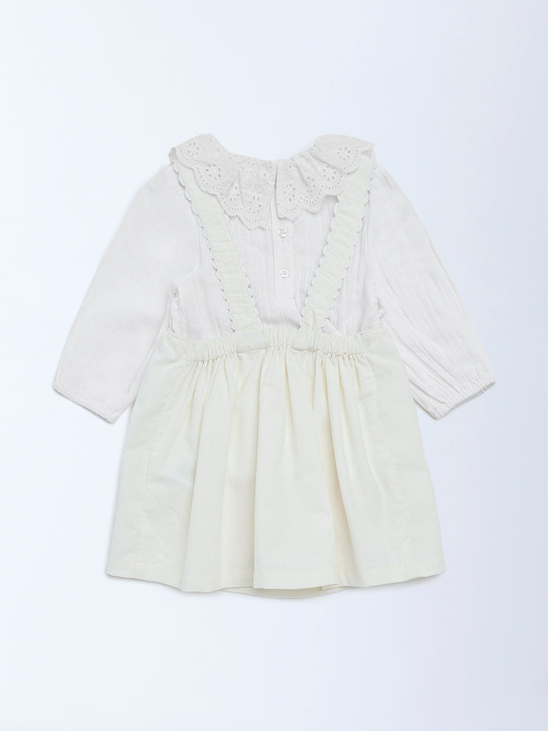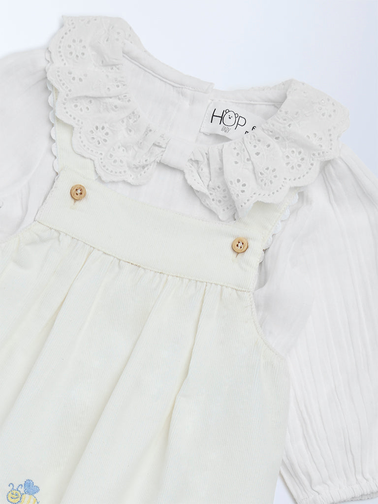 HOP Baby White Embroidered Cotton Pinafore and Top Set