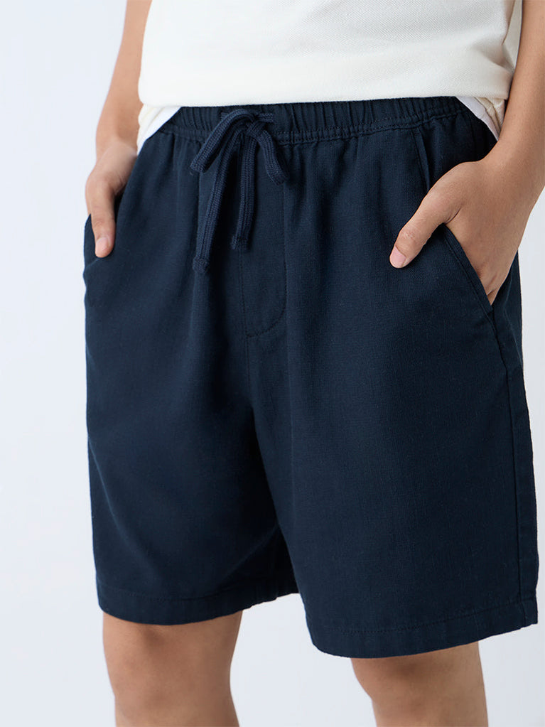 ETA Navy Solid Relaxed-Fit Mid-Rise Cotton Shorts