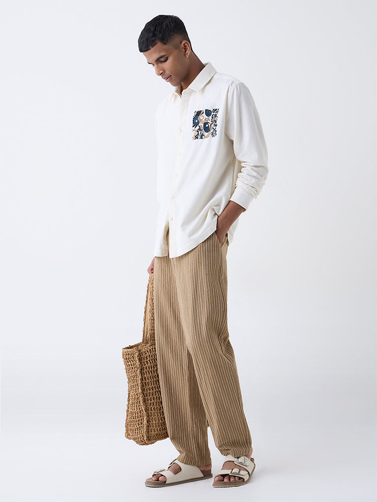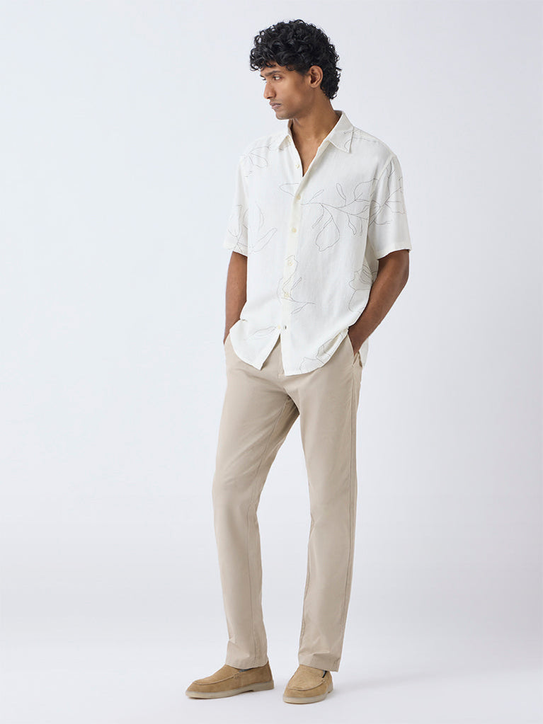 Ascot Off-White Floral Design Relaxed-Fit Shirt