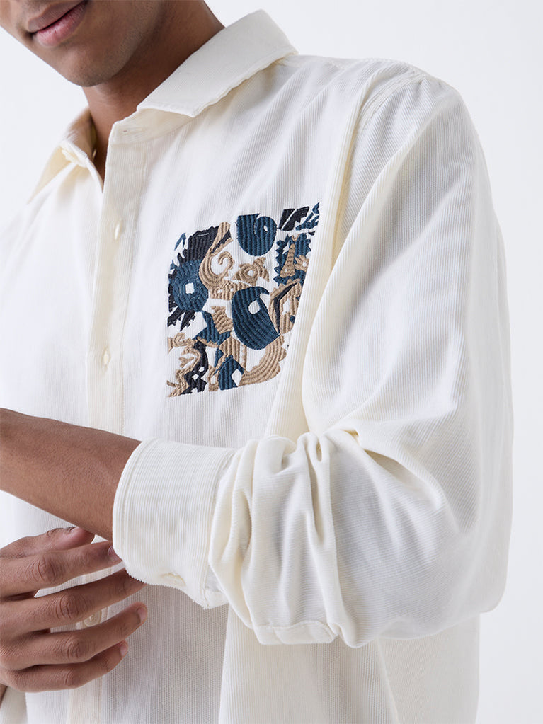 ETA Off-White Floral Embroidered Relaxed-Fit Cotton Shirt
