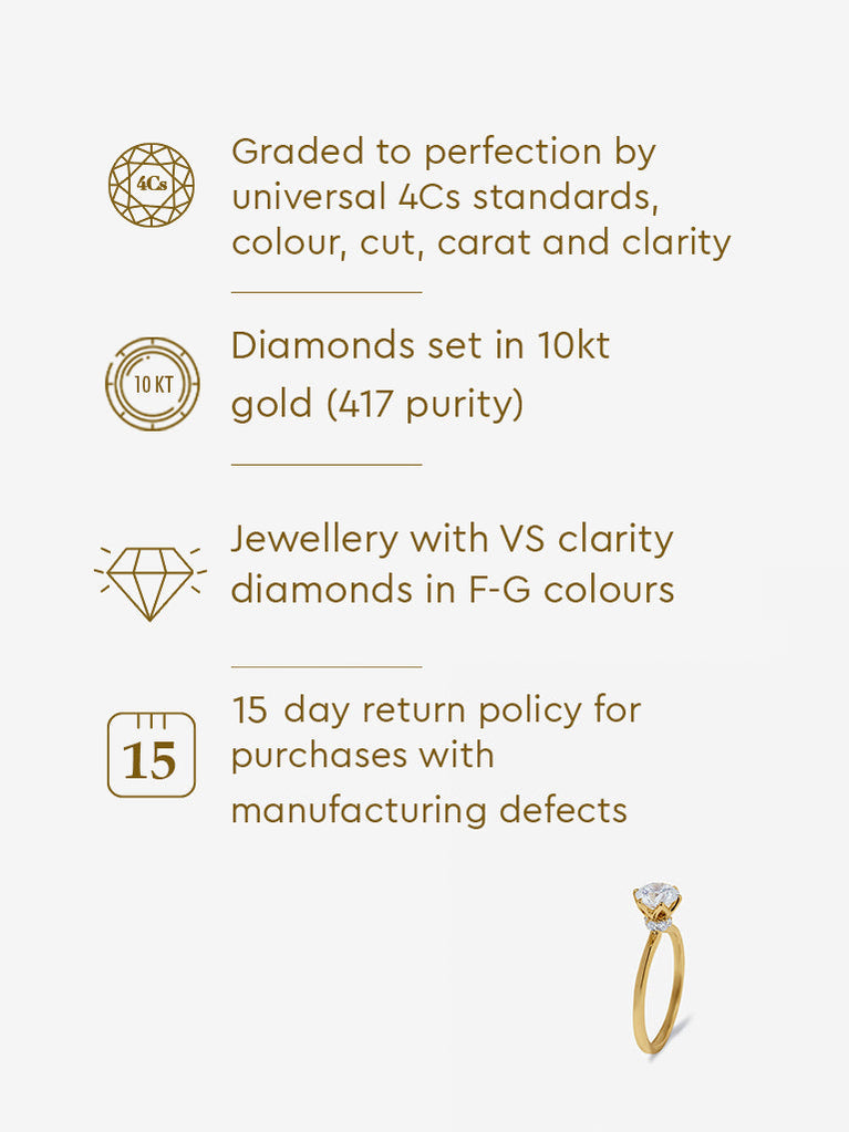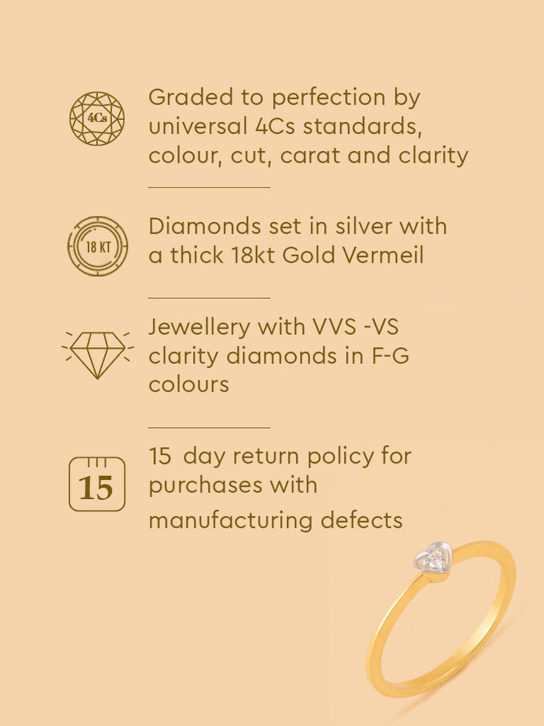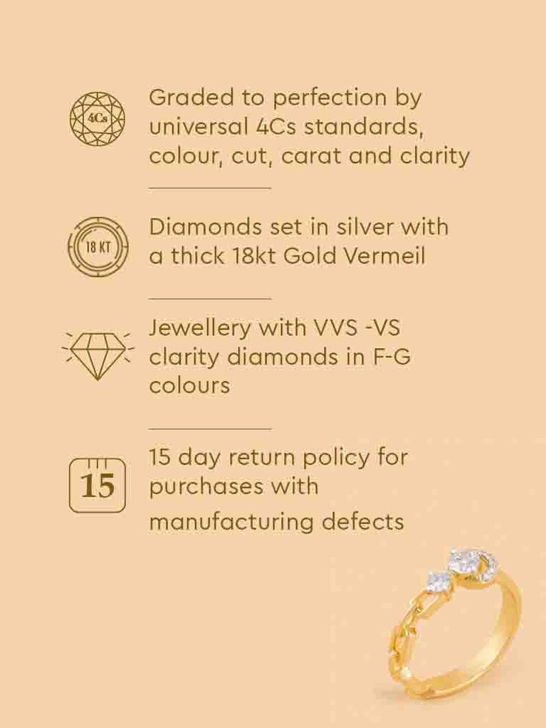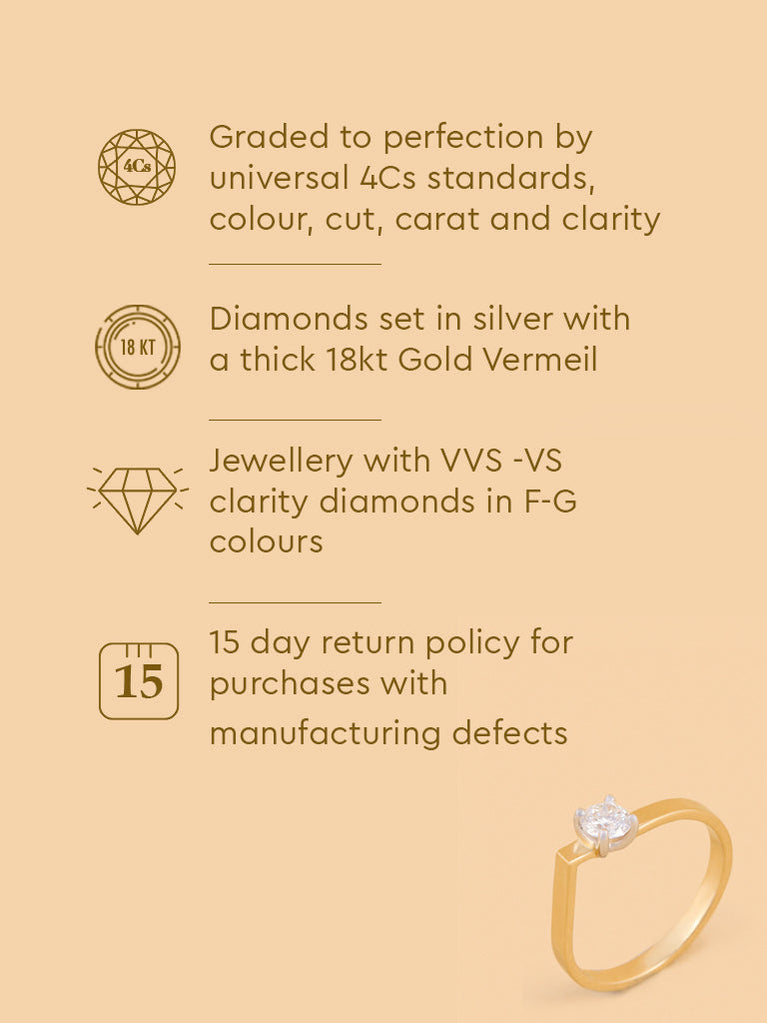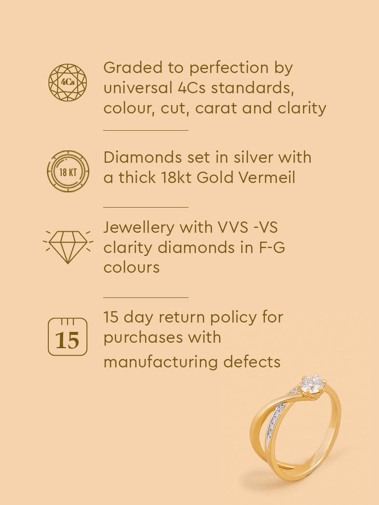 Shine bright with this brilliant solitaire lab diamond ring. Made in gold vermeil, it features a striking design that highlights the diamond’s sparkle.