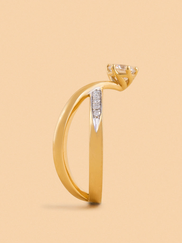 A symbol of strength, direction, and style—this chevron ring from Westside X Pome is a modern classic. Sculpted in gold and detailed with shimmering lab-grown diamonds, it’s designed with clean, angular lines that speak to quiet confidence. Whether worn solo or stacked, it lends a sharp yet elegant accent to your ensemble. Ideal for those who love their jewellery to mean more and still go with everything.