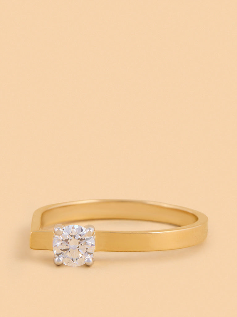 A study in timeless elegance, this Westside X Pome solitaire ring highlights the pure brilliance of a single round-cut white diamond. Set on a slender, polished yellow gold band, the stone’s radiant facets catch the light from every angle, creating a captivating display of clarity and fire. Designed for modern minimalists and eternal romantics alike, it’s a classic piece that embodies grace and permanence.