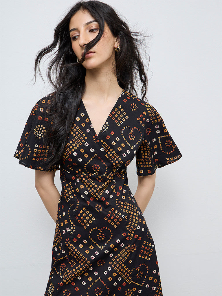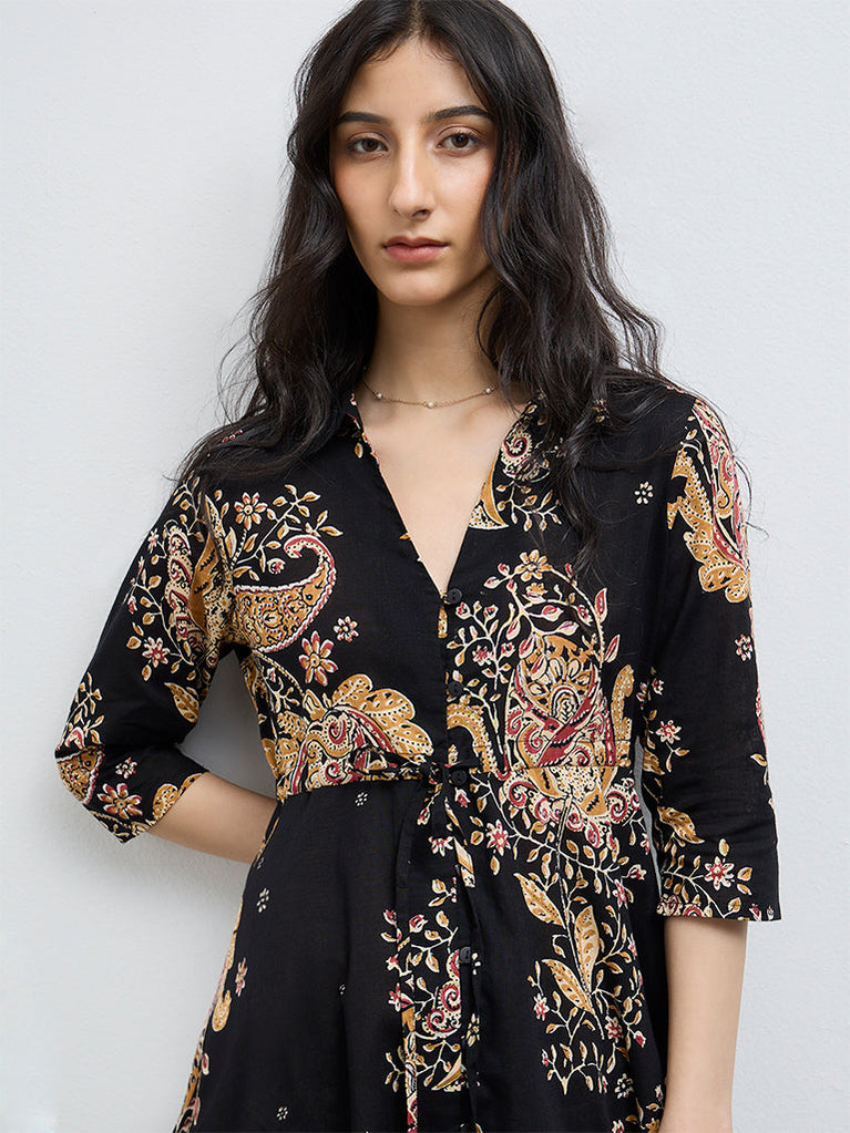 Bombay Paisley Black Printed Cotton Asymmetrical Dress
