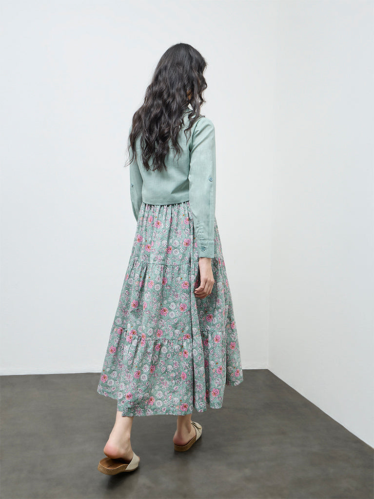 Bombay Paisley Mint Floral Cotton Tiered Dress with Jacket