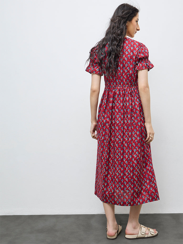 Bombay Paisley Red Printed Cotton A-Line Dress