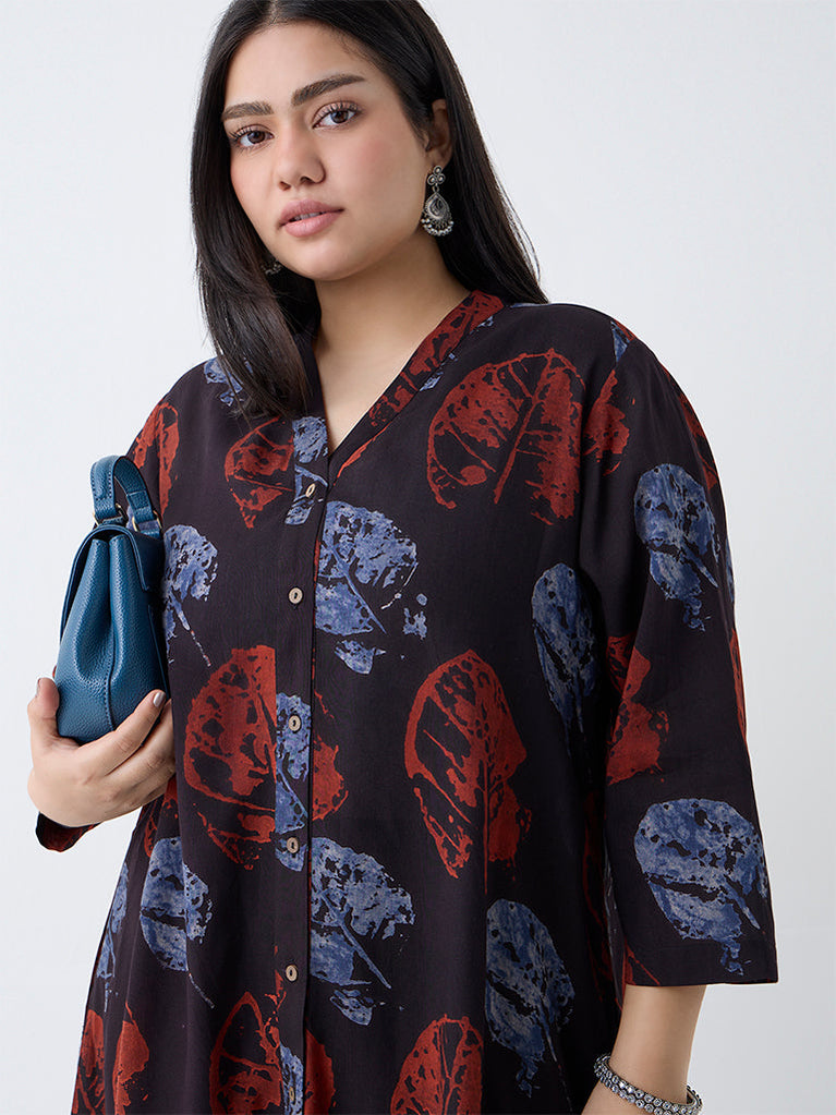 Rejuvenating everyday festive dressing with refined detail, this black kurta by Diza is defined by delicate leaf prints that feel timeless and grounded. Made from breathable fabric in an A-line silhouette, it is finished with a V-neck, three-quarter sleeves and a practical slip pocket.