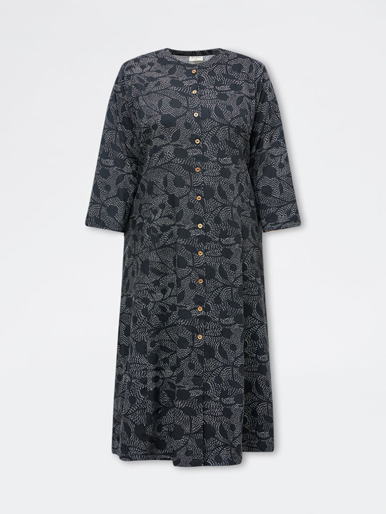 This indigo kurta from Diza features a mix of garden-themed motifs on an A-line silhouette, elevating its ethnic appeal. It is crafted from a soft, premium-blend fabric that delivers a sumptuous feel through the day. A collared and 3/4th sleeves decorated defines the shape, while side pockets add a practical element. A balanced choice for regular ethnic wear with a polished finish.