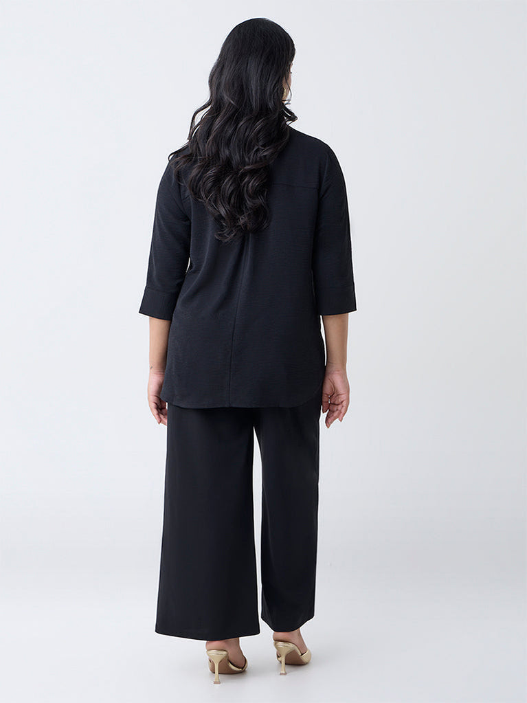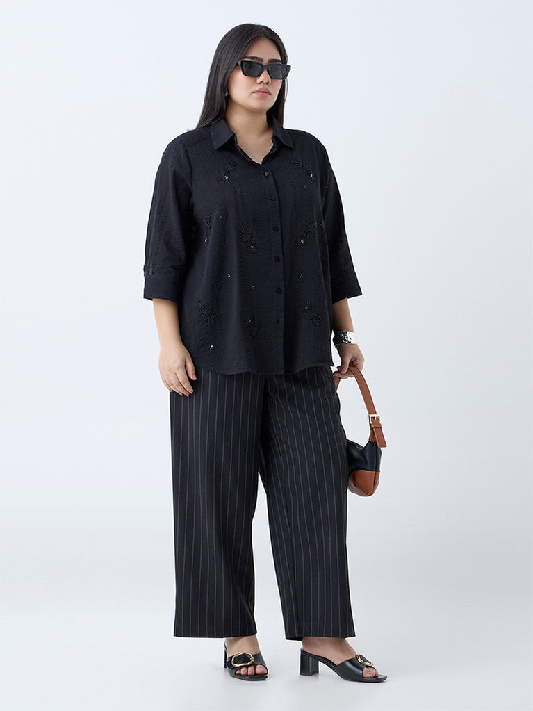 A modern essential, these black trousers by Gia offer timeless tailoring and contemporary ease. The structured waistband sits comfortably at the waist, while the classic pinstripe pattern adds subtle refinement. Designed with a straight cut, they move seamlessly from office-ready edits to polished casual pairings.