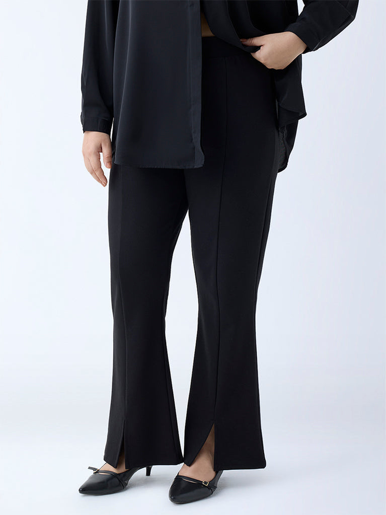 These black trousers from Gia are tailored in a flattering bootcut silhouette that elongates the frame. Crafted from stretch-infused fabric, they offer all-day ease and movement, while the elasticated waistband ensures an adjustable fit.