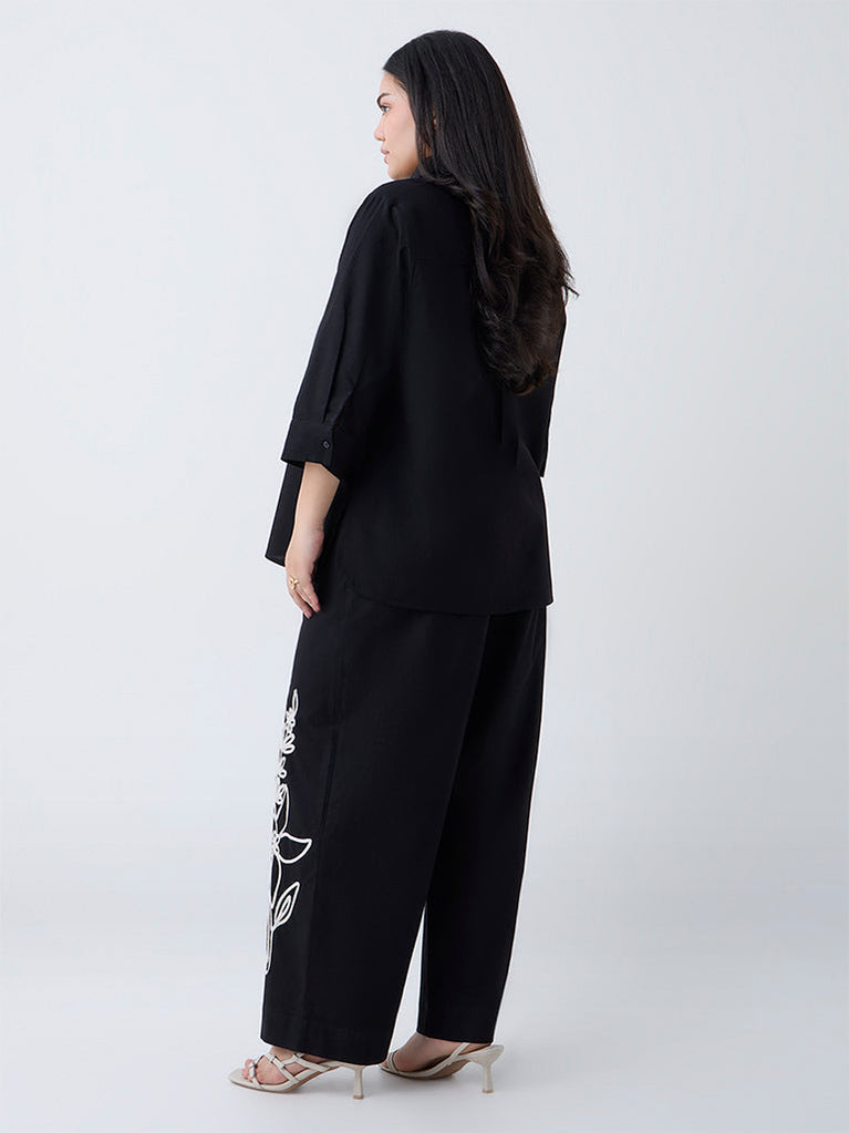 Gia Black Floral Embroidered Cotton-Blend Trousers