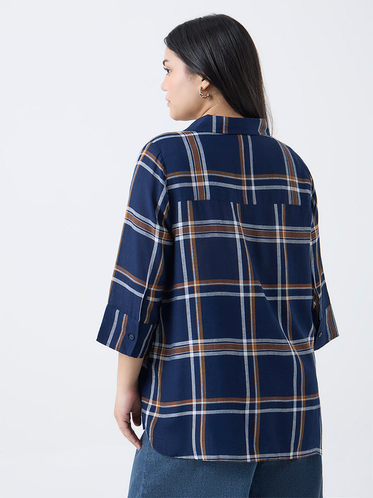 Gia launches this navy shirt defined by its checkered print that adds a contemporary touch to the classic silhouette. Crafted from an ultra-lightweight fabric that feels easy on the skin, it features a collar that leads into a button placket and three-quarter sleeves that offer relaxed wearability.