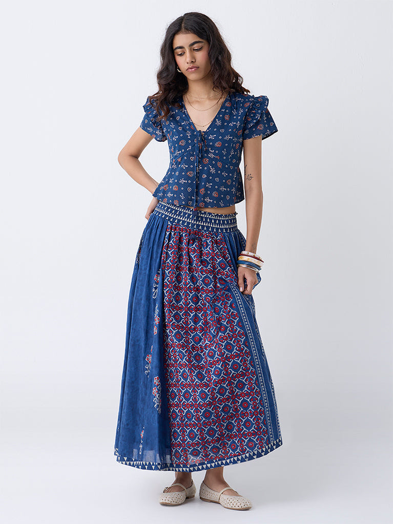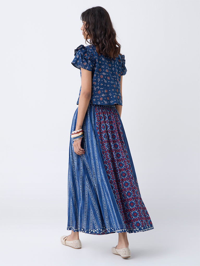 Bombay Paisley Blue Printed Cotton Maxi Skirt