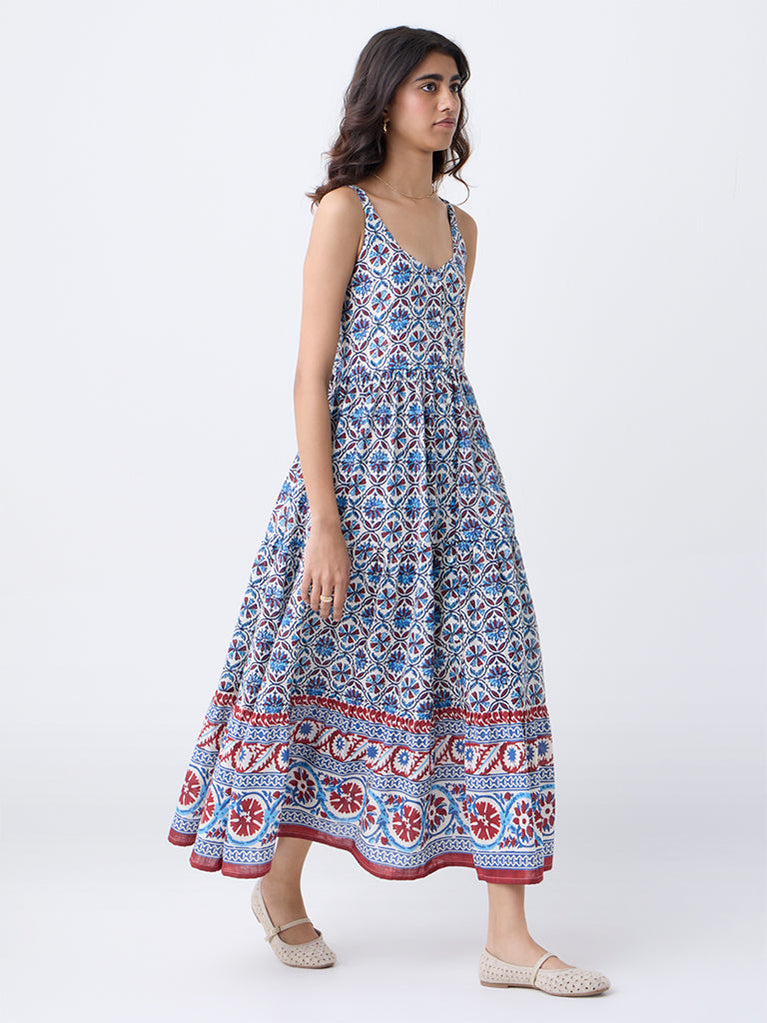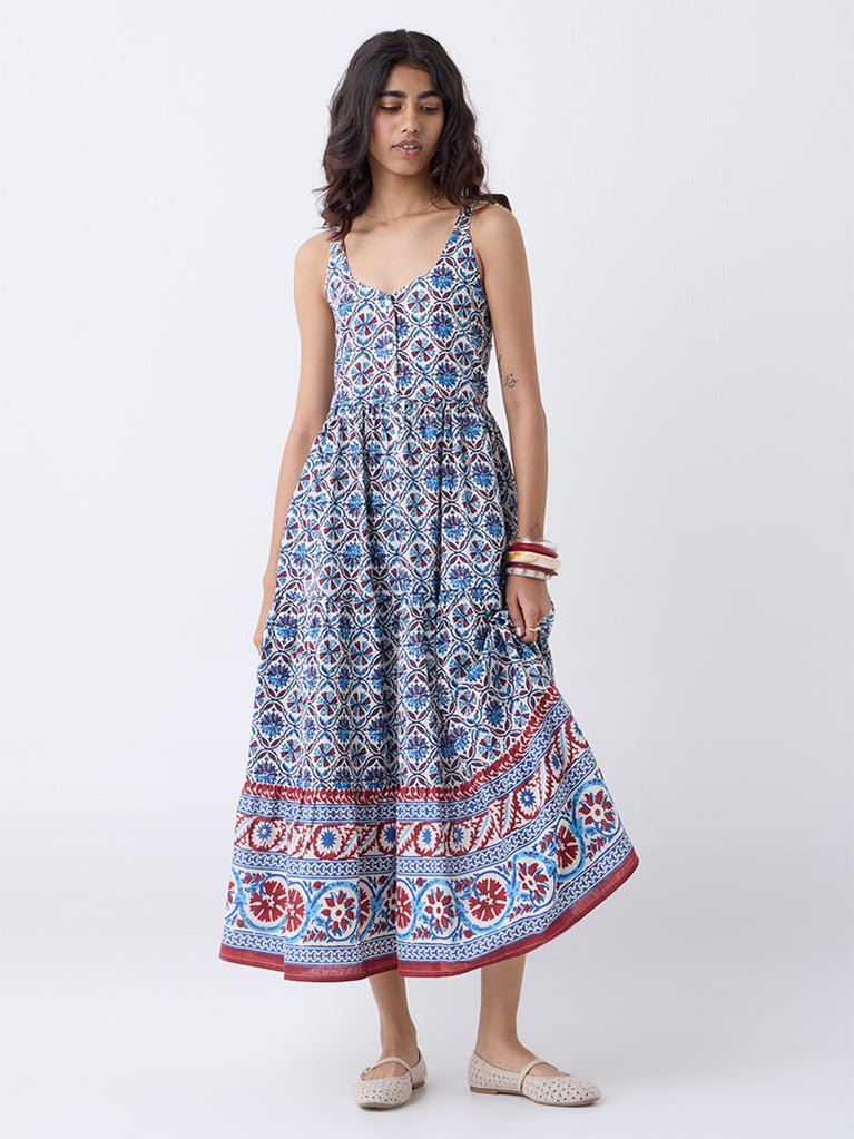Bombay Paisley Blue Printed Cotton Tiered Dress