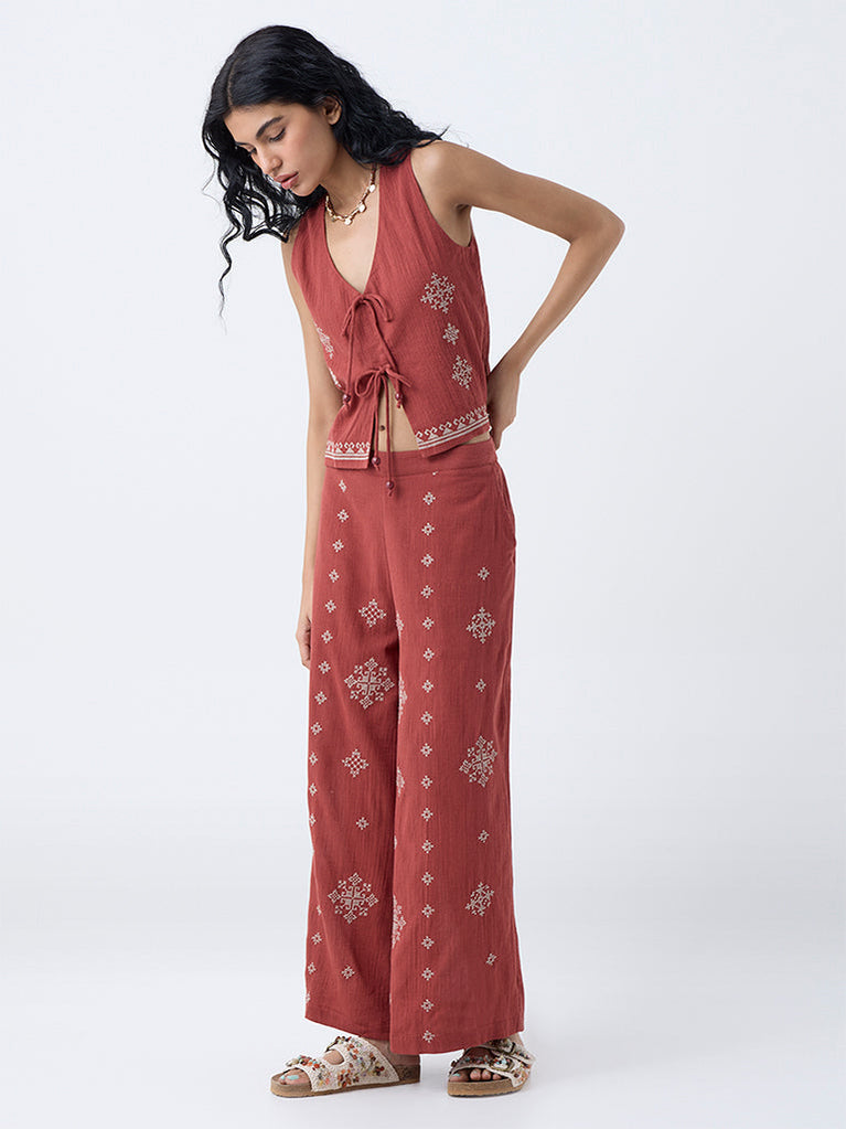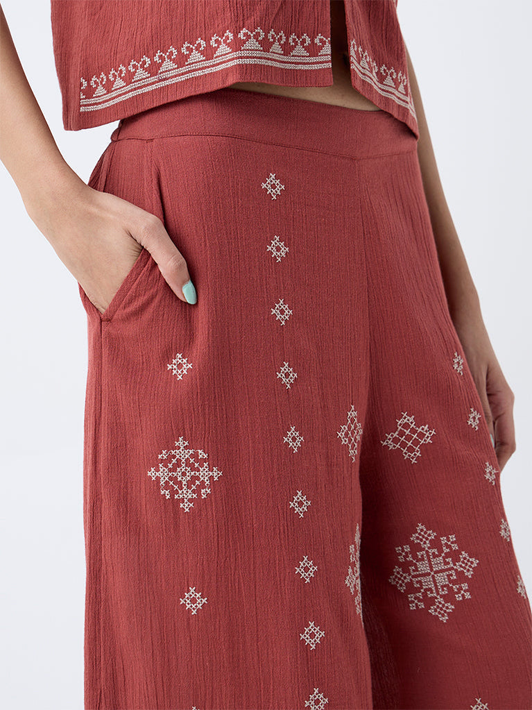 Bombay Paisley Rust Embroidered Cotton Palazzos