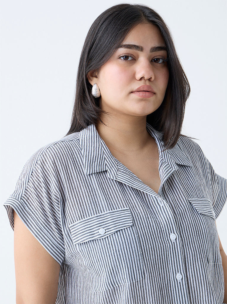 Lend a touch of effortless sophistication to your wardrobe with this black striped shirt from Gia. Designed with a sharp collar, button placket and relaxed dolman sleeves, it’s finished with dual front pockets in a cotton-rich fabric build for all-day comfort.