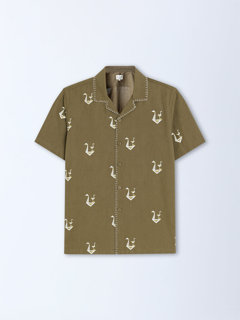 ETA Olive Embroidered Relaxed-Fit Cotton-Blend Shirt