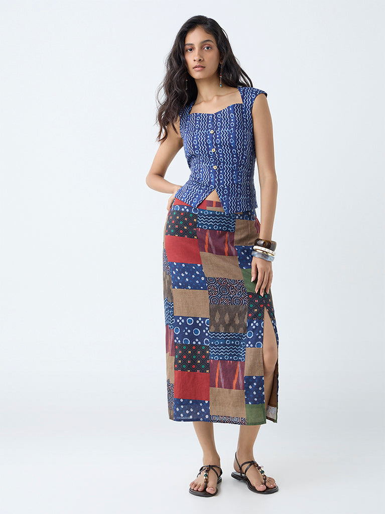 Enrich your off-duty style with this brown skirt from Bombay Paisley, adorned with vibrant block-pattern-inspired motifs that bring a touch of playful sophistication. Spun from pure cotton for enhanced comfort, it features an elasticated waistband and concealed zipper for effortless wear.