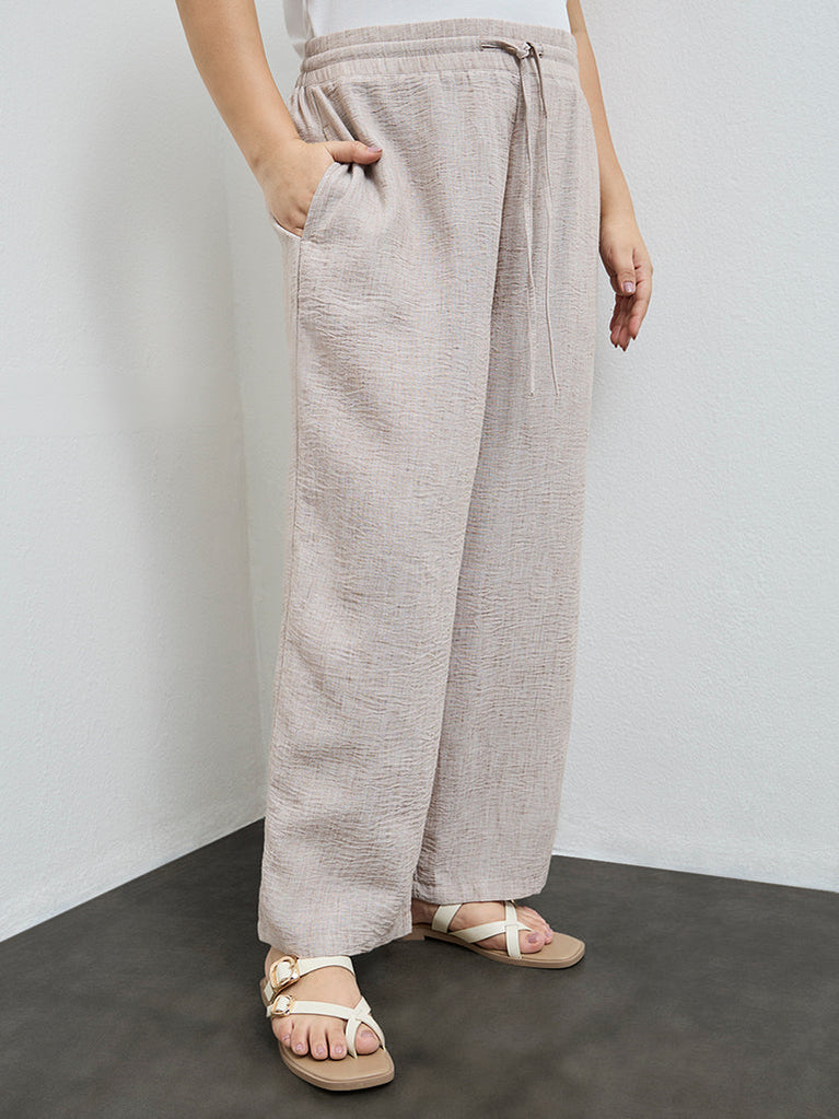 Gia Beige Textured High-Rise Pants