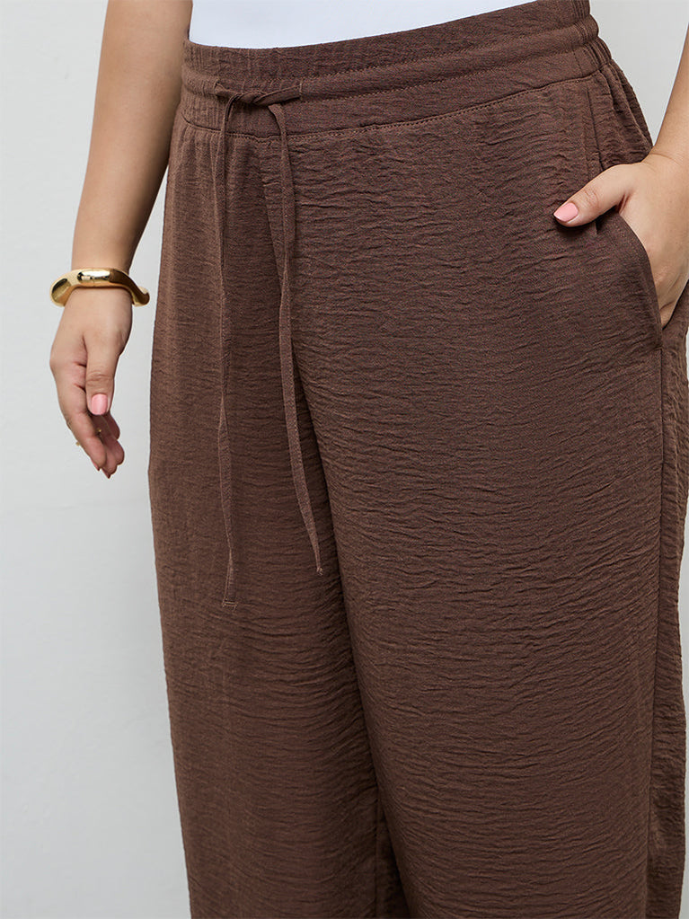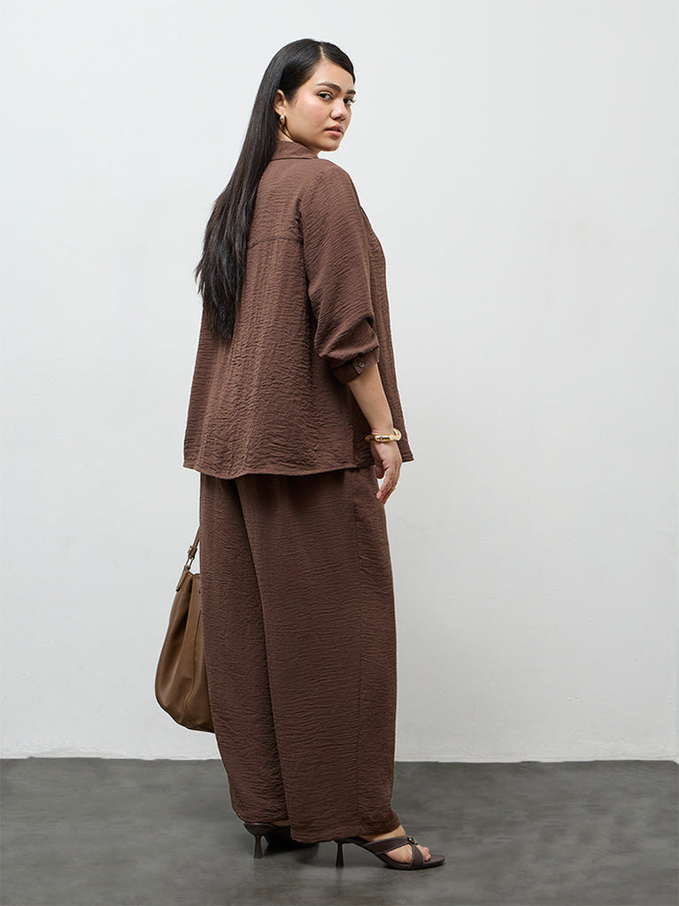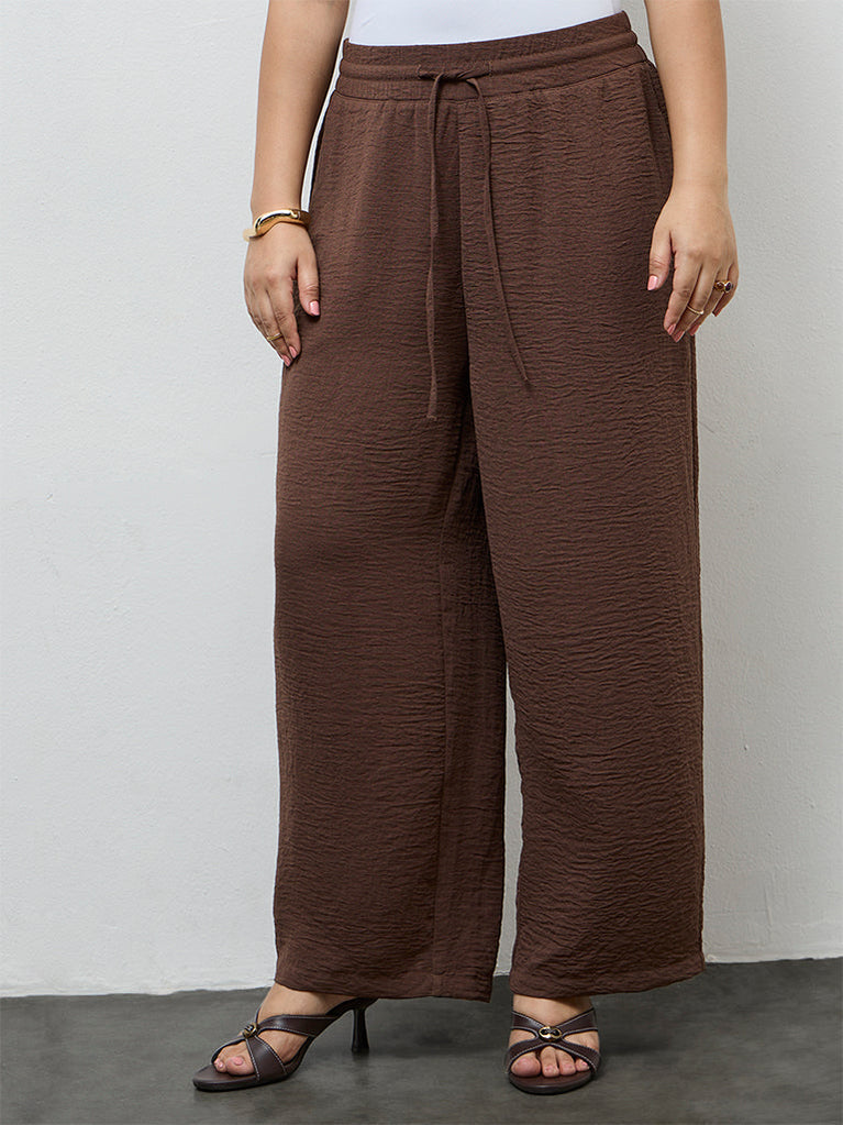 Gia Dark Brown Textured High-Rise Pants