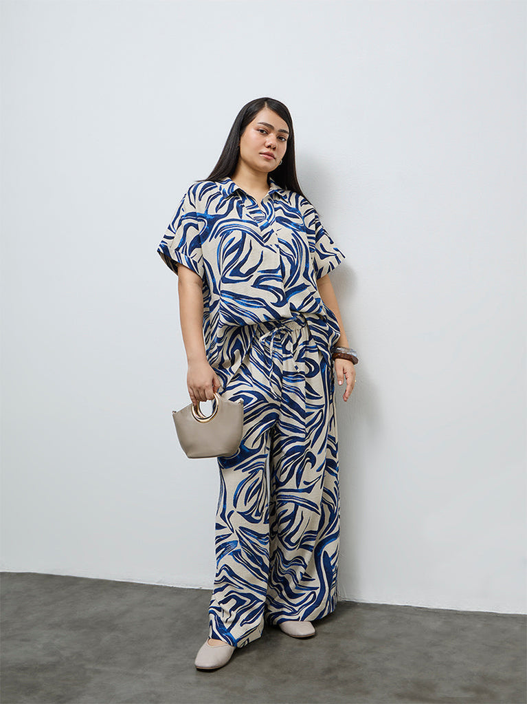 Gia Navy Abstract Design Blouse