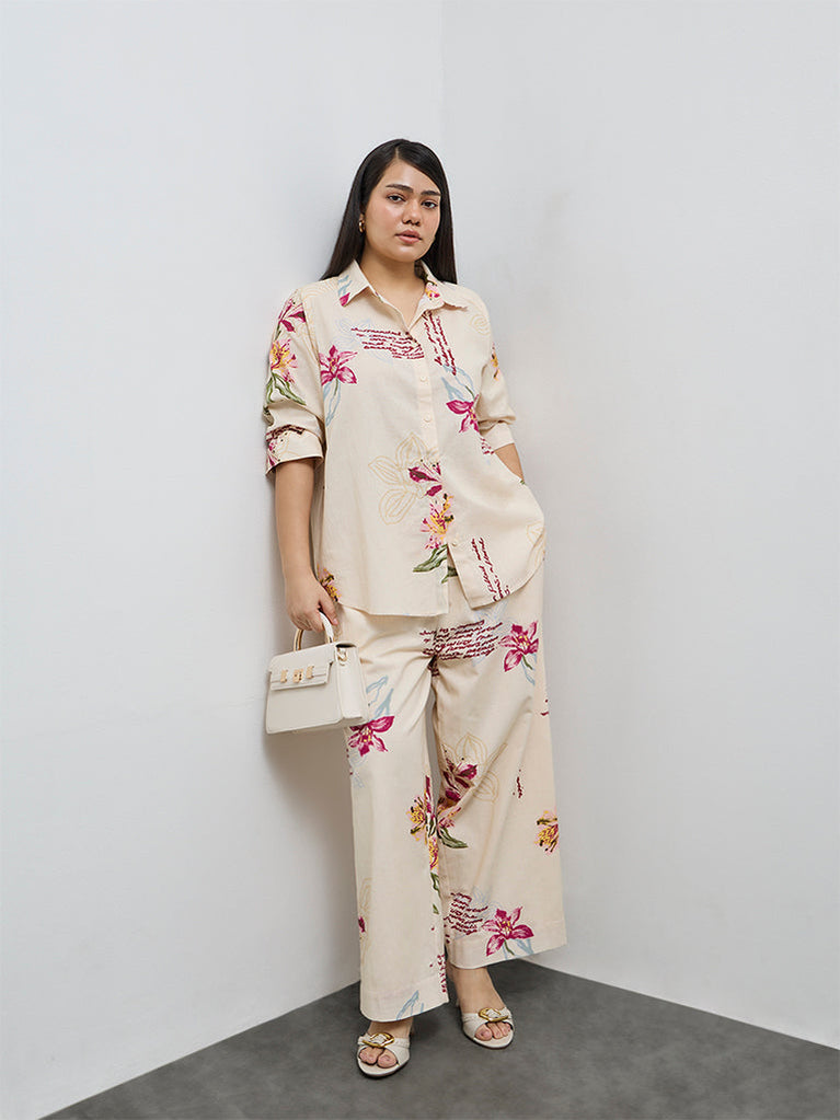 Gia Cream Floral Pattern Cotton-Blend Shirt