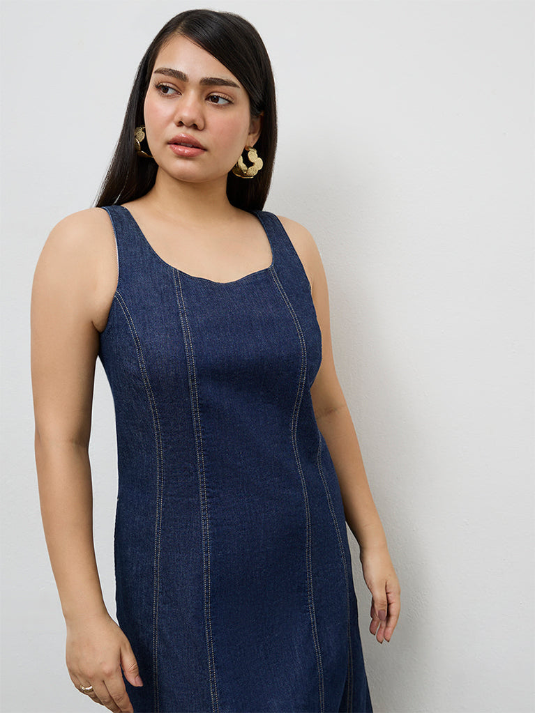 Gia Dark Blue Denim A-Line Dress