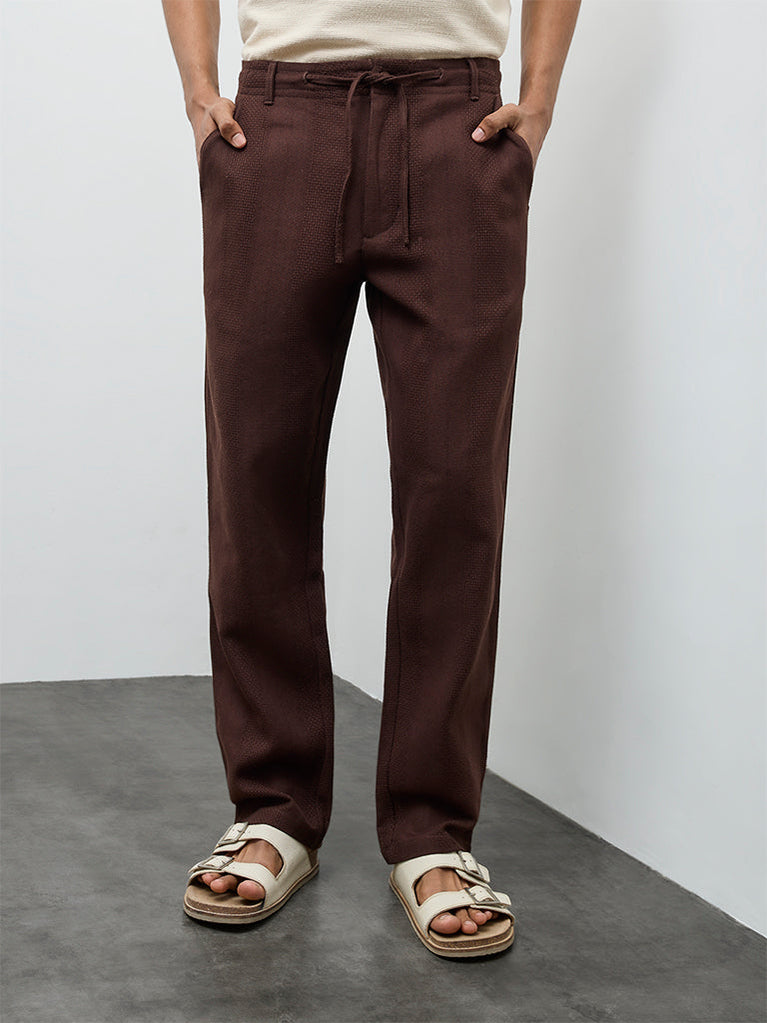 ETA Dark Brown Textured Relaxed-Fit Mid-Rise Cotton Chinos