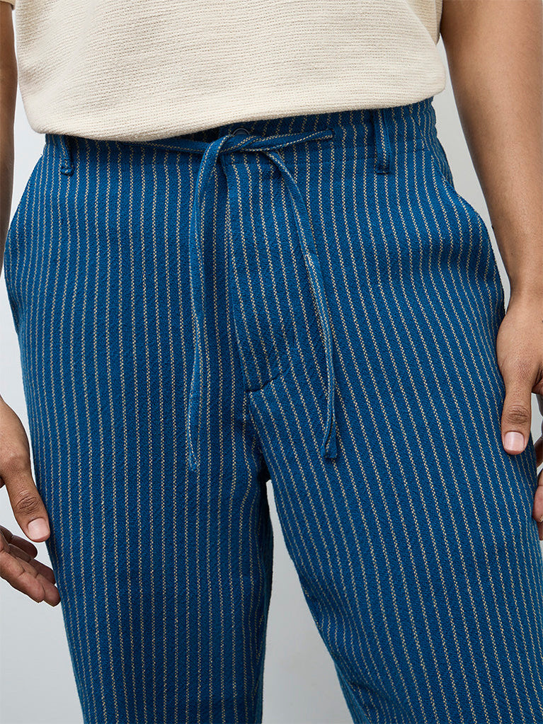 ETA Indigo Striped Relaxed-Fit Mid-Rise Cotton Chinos