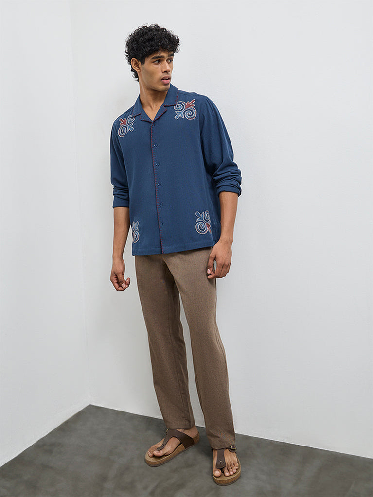 ETA Brown Embroidered Relaxed-Fit Cotton Jacket