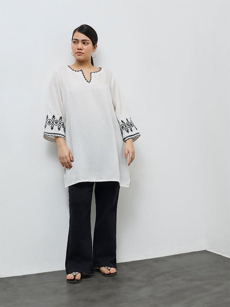 Diza White Leaf Embroidered Cotton Tunic
