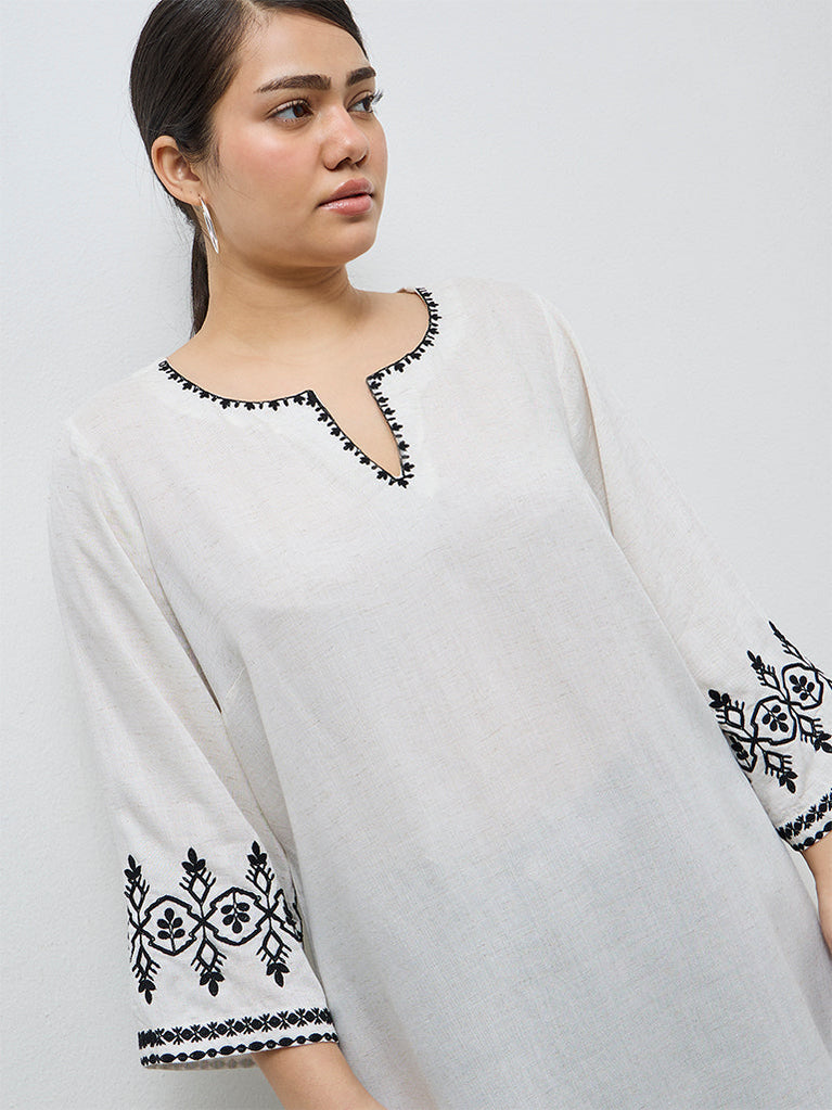 Diza Off-White Embroidered Kurti