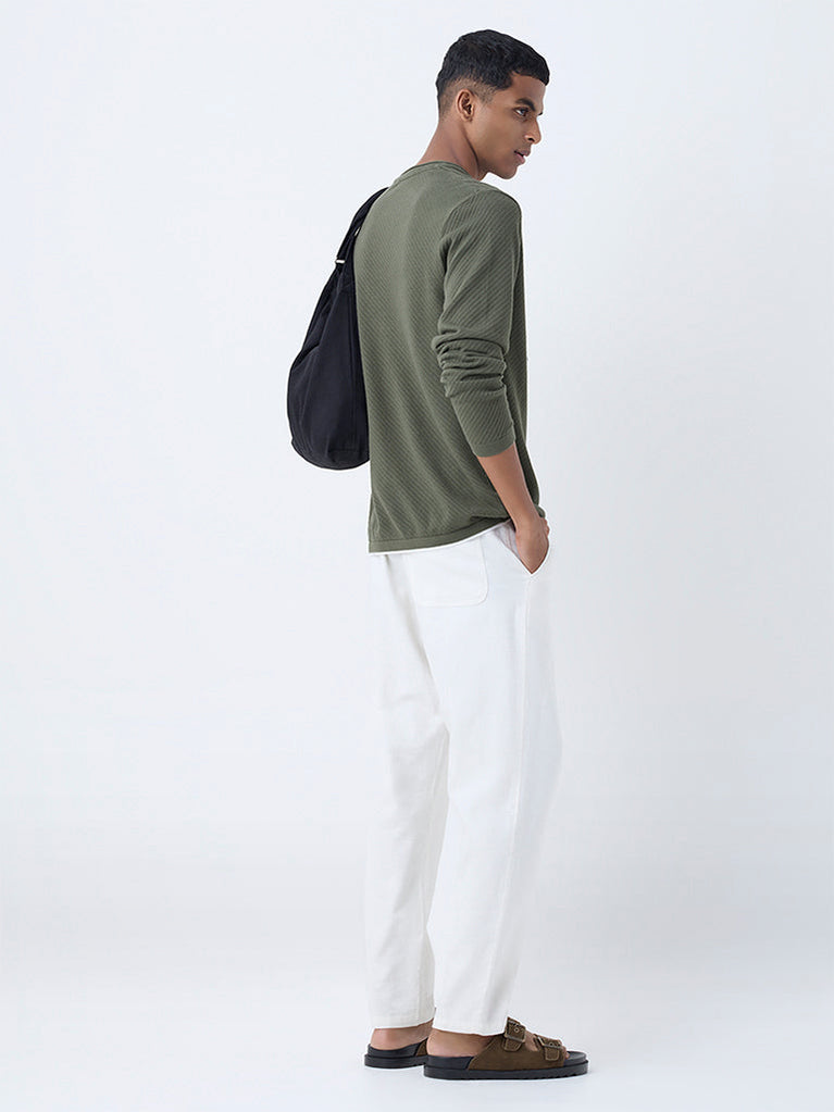 ETA Olive Textured Relaxed-Fit Cotton Sweater
