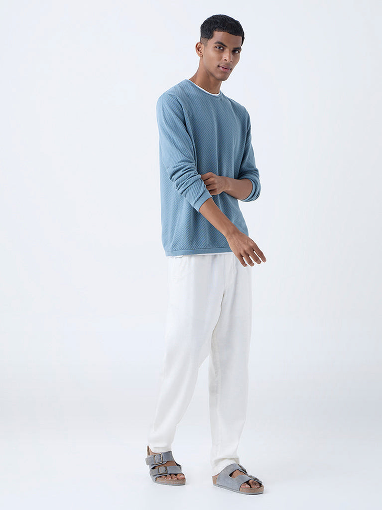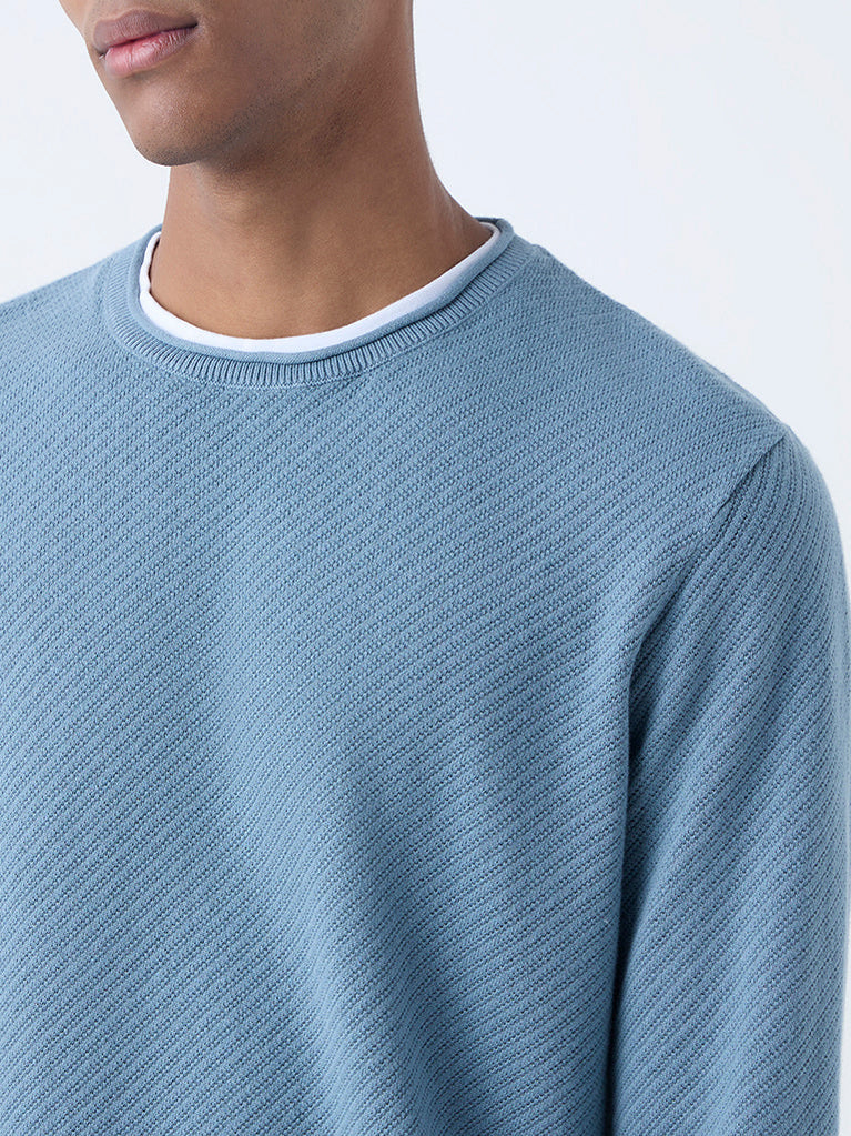 ETA Dusty Blue Textured Relaxed-Fit Cotton Sweater