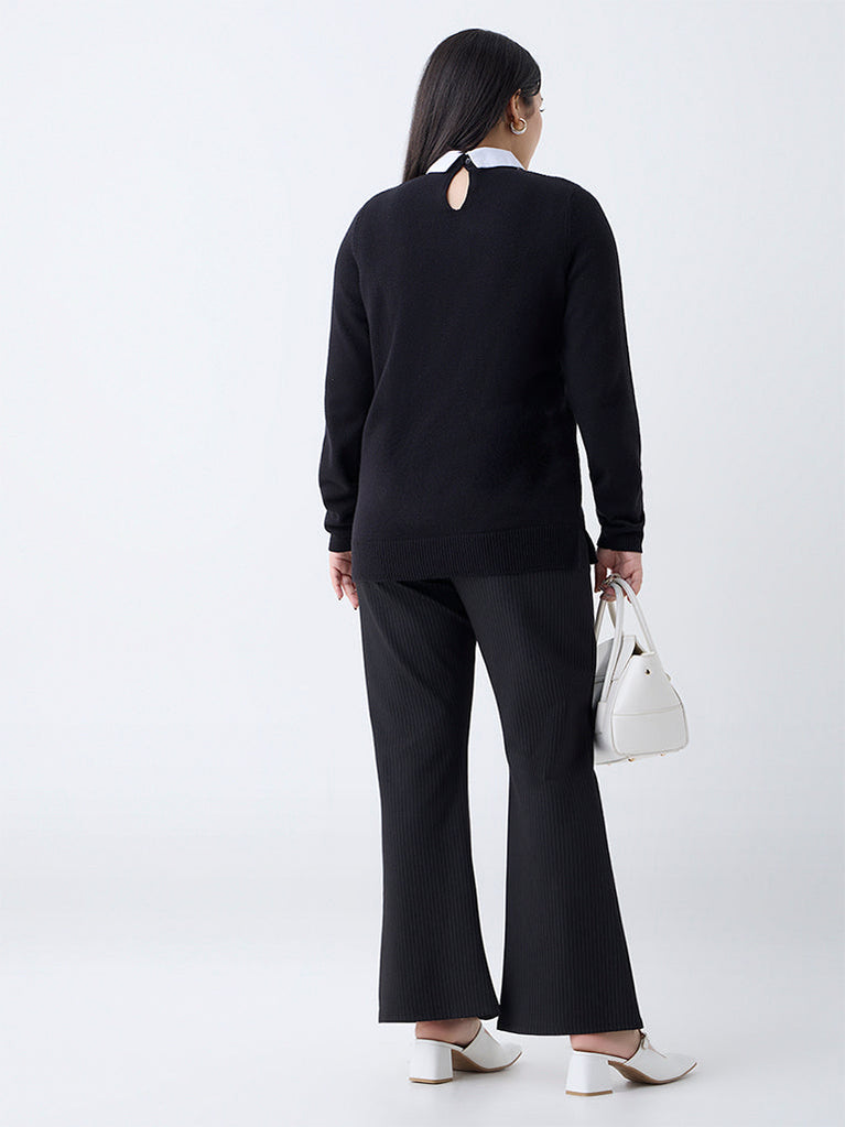 Elevate cold-weather edits with this black knit sweater by Gia, designed with a crisp contrast collar for contemporary charm. Finished with full sleeves, it brings equal measures of comfort and sophistication to your everyday wardrobe.
