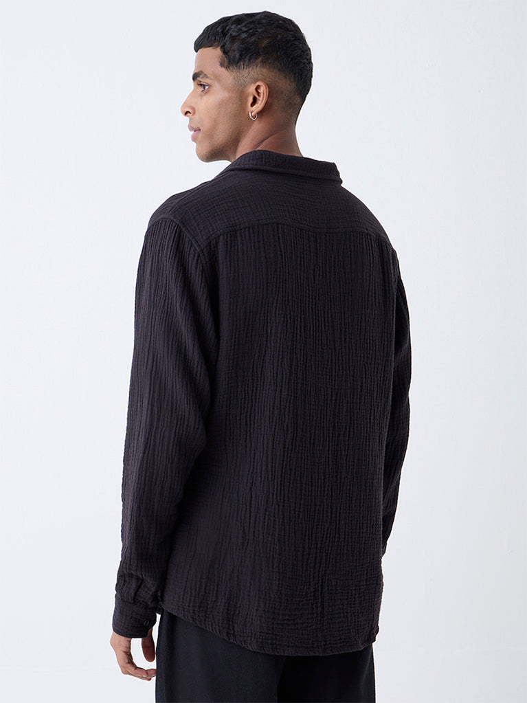 ETA Black Crinkle-Textured Relaxed-Fit Cotton Shirt
