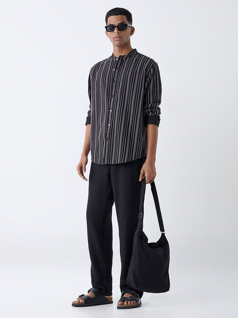 ETA Black Striped Relaxed-Fit Cotton Shirt