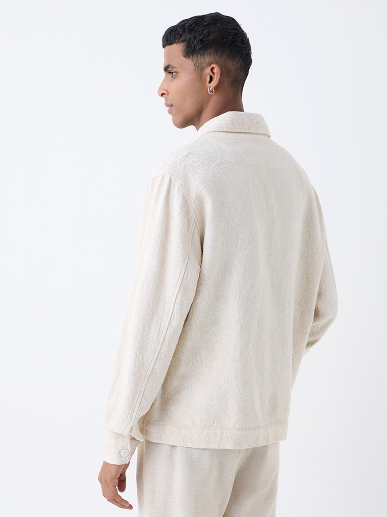 ETA Light Beige Paisley Design Relaxed-Fit Cotton Jacket
