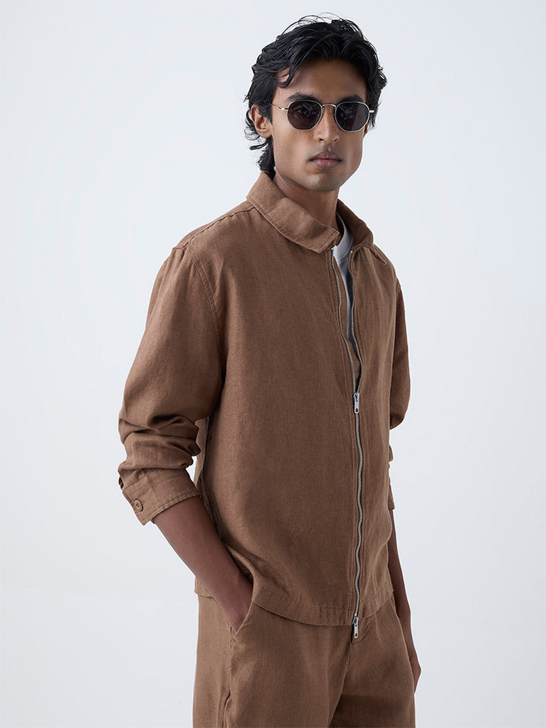 Ascot Khaki Solid Relaxed-Fit Linen Jacket