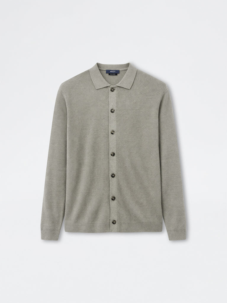 This beige sweater from Ascot offers an easy balance of comfort and clean styling. Cut in a relaxed fit, it features a cutaway collar, a button-up front and full sleeves for a classic, understated look. Made from a soft acrylic-blend fabric with a knitted texture, it provides a warm and smooth feel suited for extended wear. A reliable layering piece for refined everyday dressing.