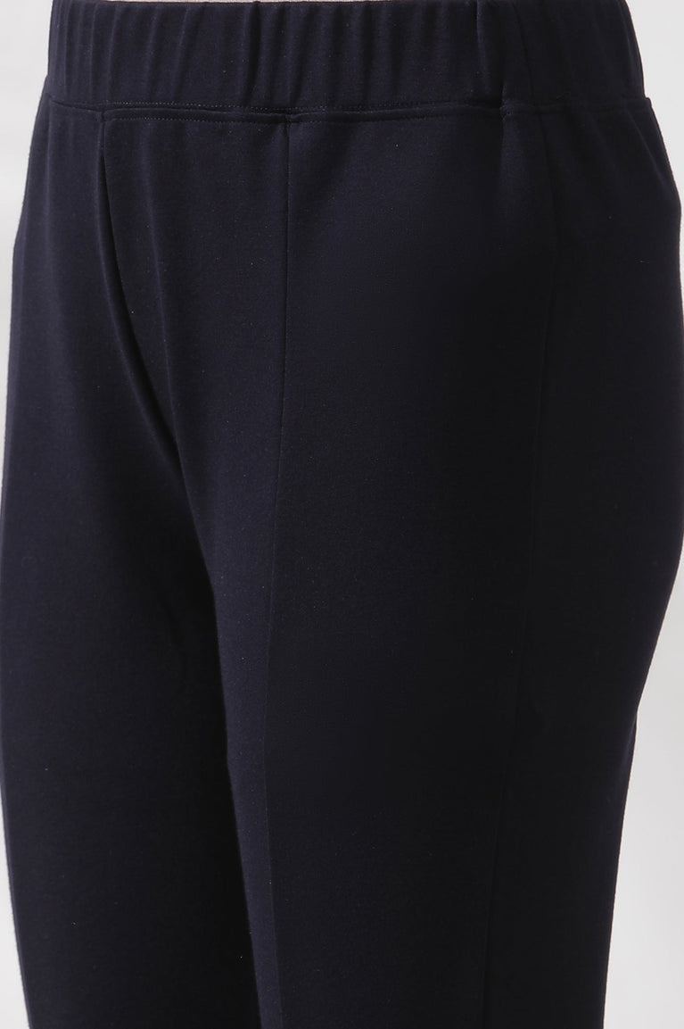 Crafted in a luxurious knit fabric, these blue palazzos redefine comfort and style. The straight-fit silhouette ensures a flattering look, while the slip-on closure and elasticated back waistband provide effortless wearability. Featuring functional side pockets, this versatile piece is perfect for festive occasions or casual outings. Pair it with a kurta or a chic top to create a polished ensemble that transitions seamlessly from day to night.